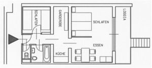 Komplett eingerichtete Kleinküche, 2 Schlaf- bzw. Wohn-Schlafraum, Bad und Dusche, WC, seeseitig gelegene Terrasse, Privatparkplatz, Geschirr- und Bettwäsche, Sat-TV und Waschmaschine. Die Wohnung befindet sich in einem Haus mit mehreren Ferienwohnungen.